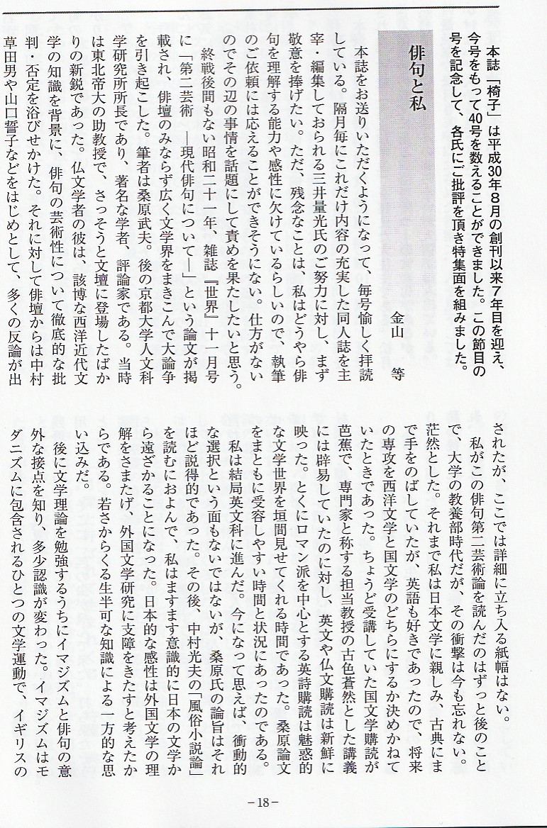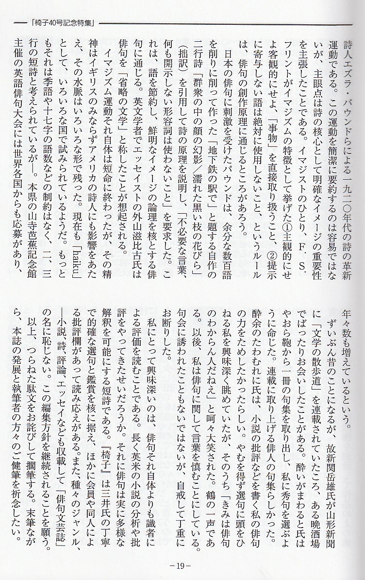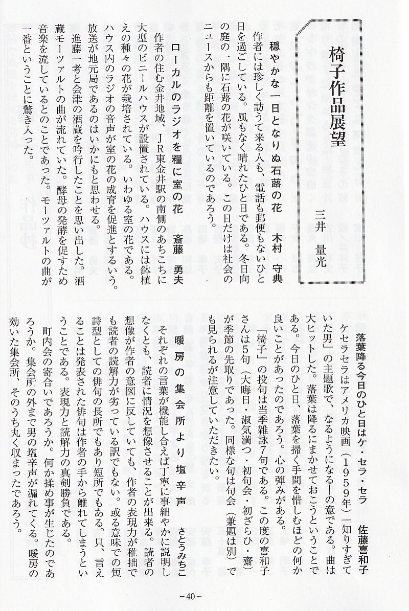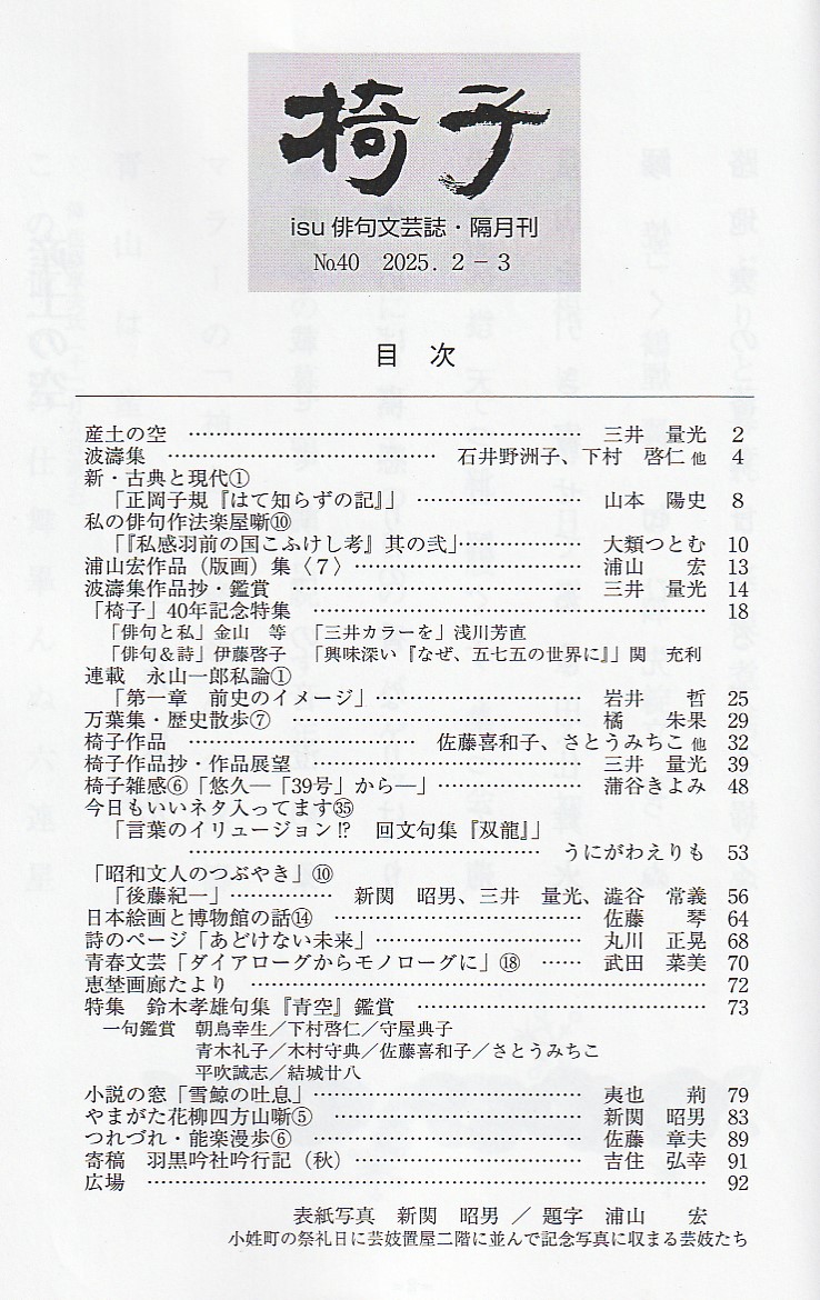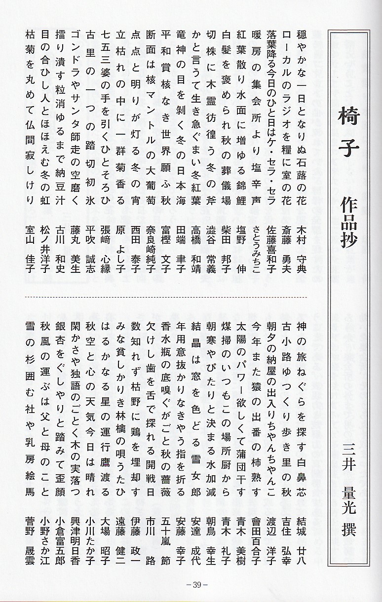 さて、東濤会会員三井量光氏が主催している俳句誌「椅子」が40号を