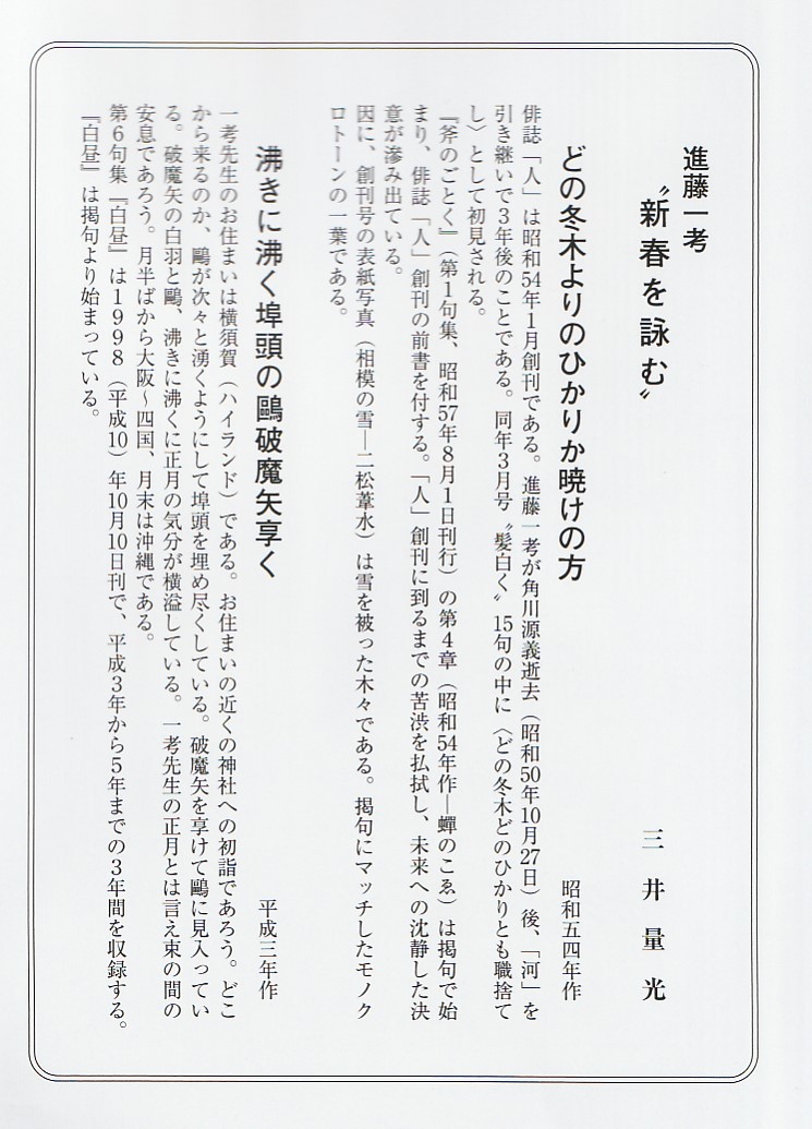 俳句誌発行を続けている三井量光氏の業績を讃えてくれる人はいないのかと