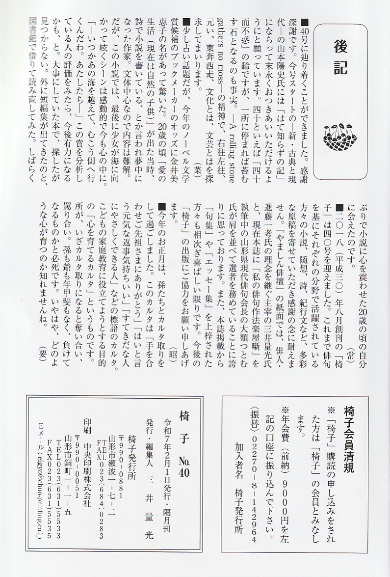 三井 量光氏主宰俳句誌「椅子」40号発刊!!