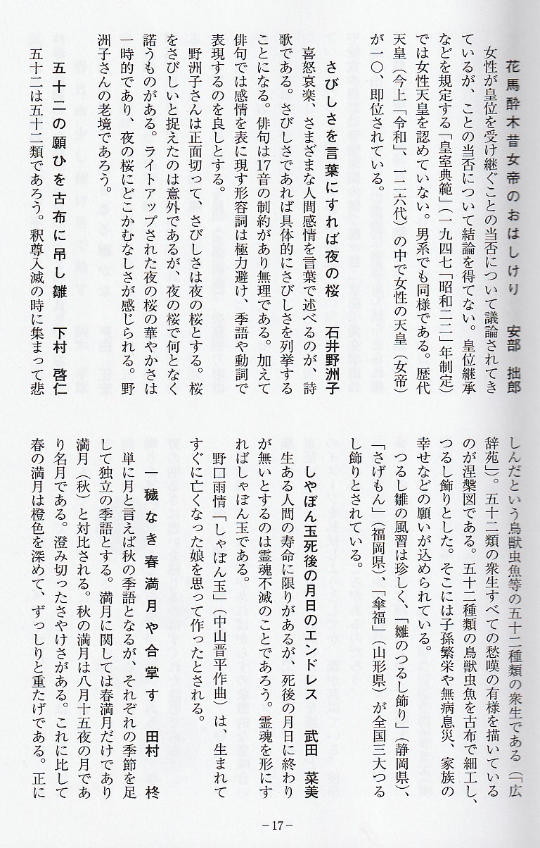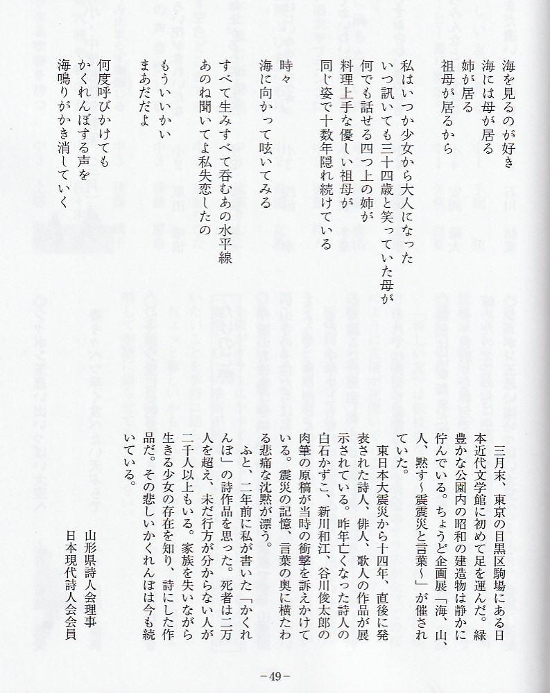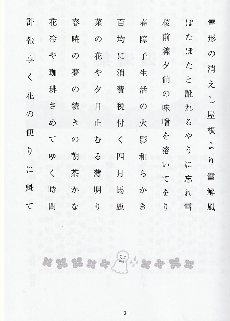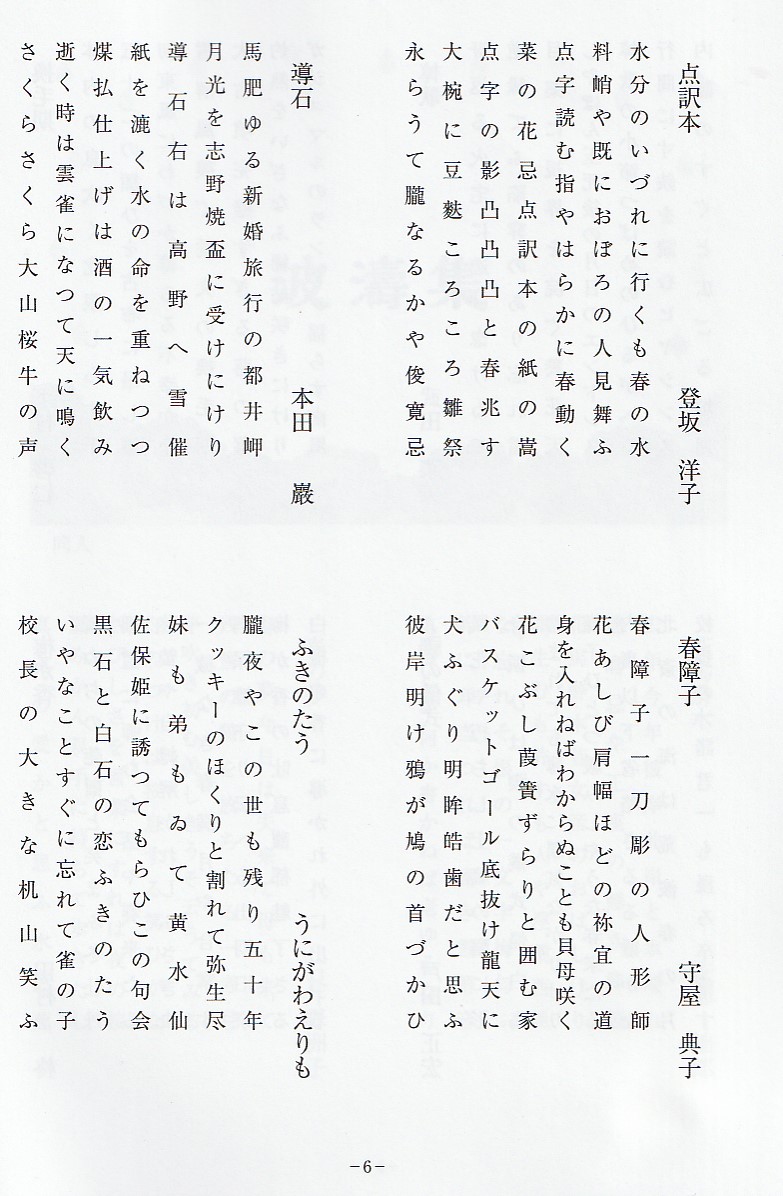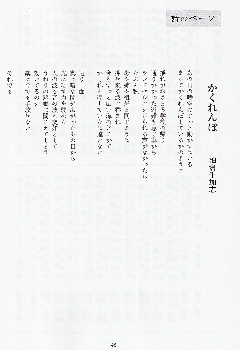 次は本書の特色である詩のコーナーです。狙いは俳句を創る人は詩を創る感覚も大切に