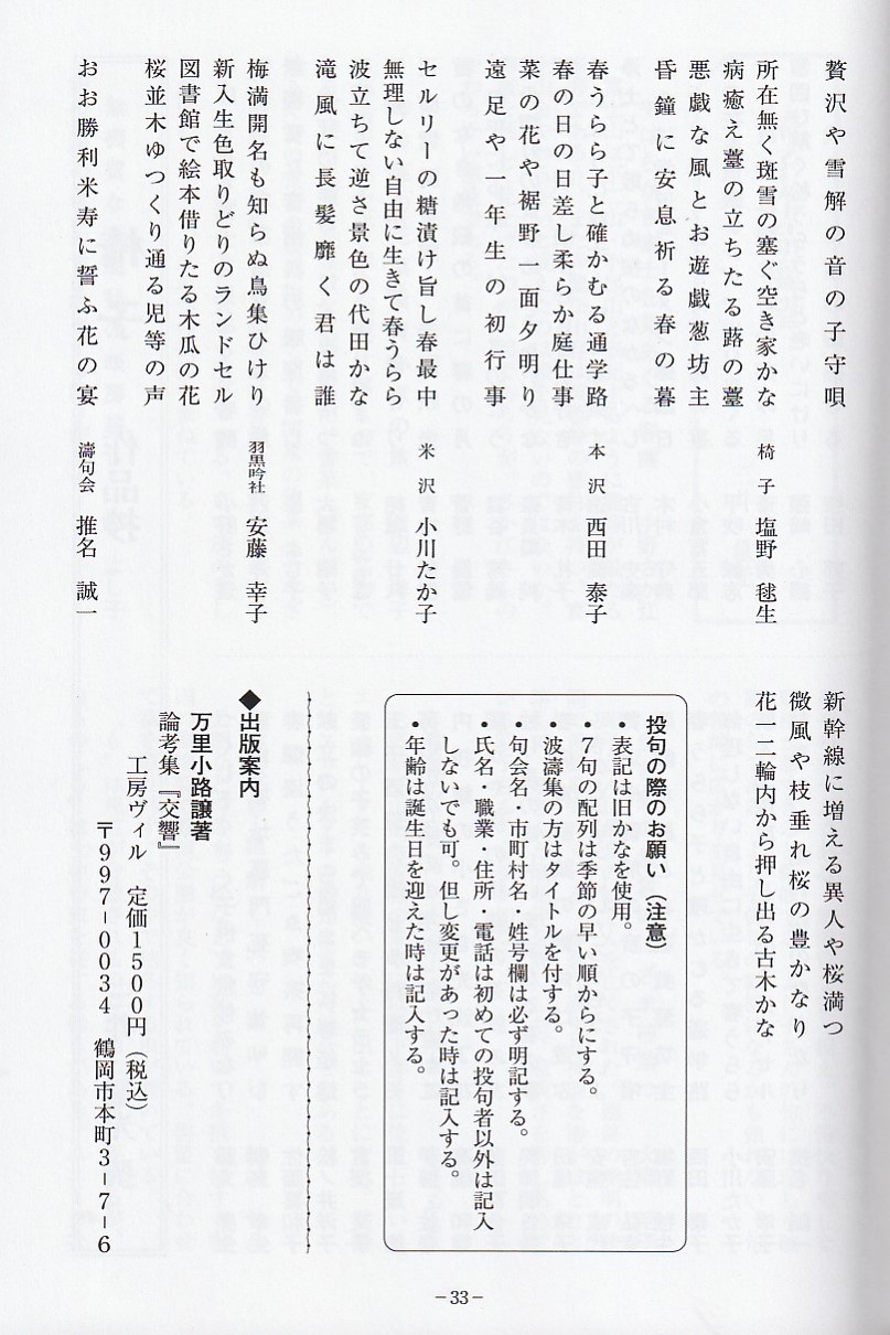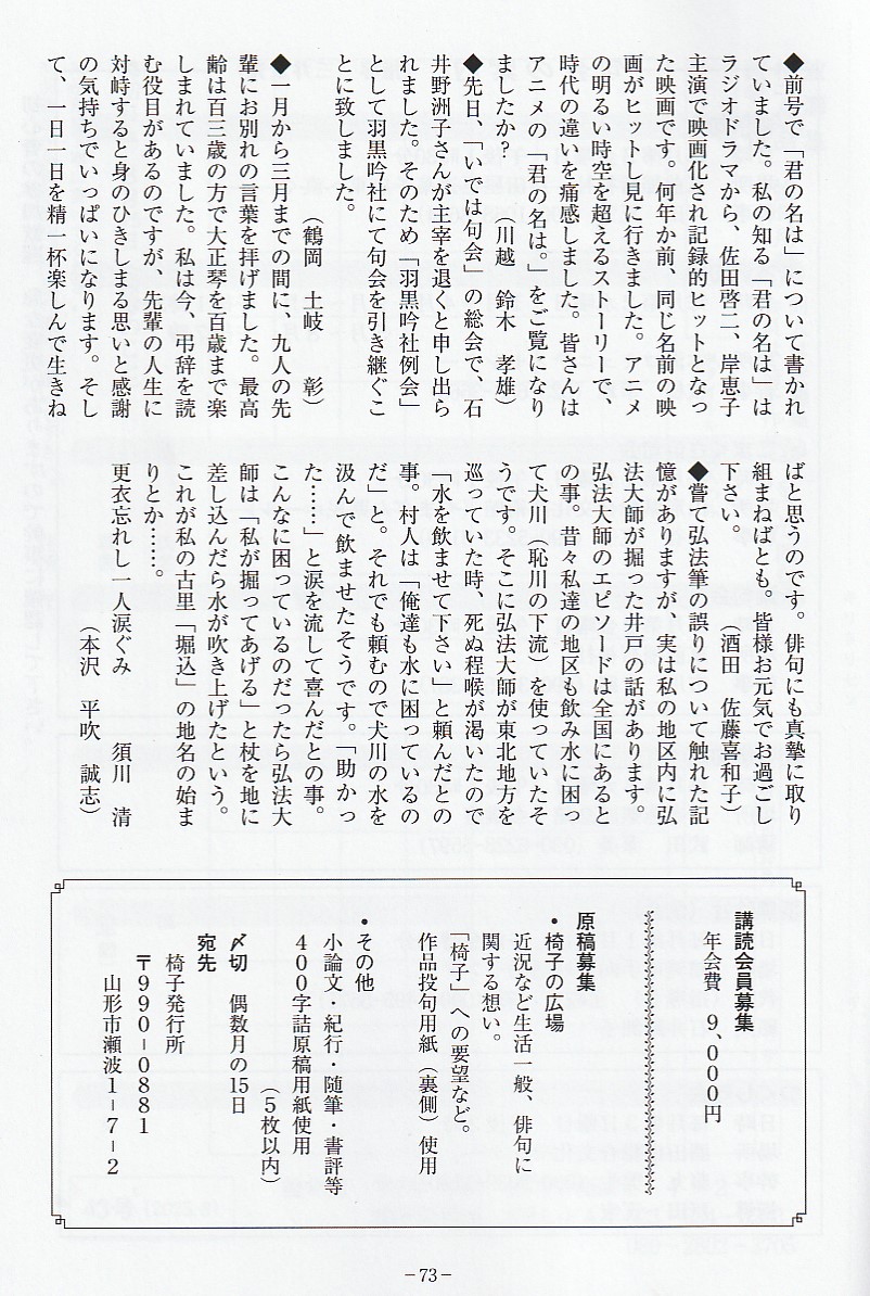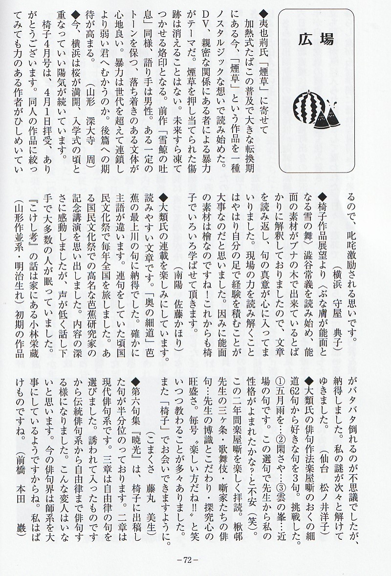 いよいよ最後のページとなりました。今号も内容が充実してきて俳句誌としてだけでなく