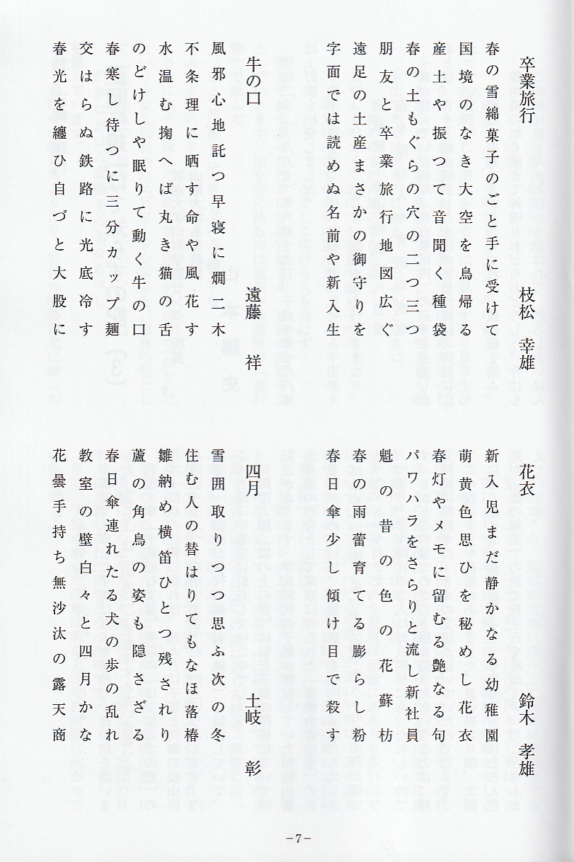 会員からの投句7句を紹介しています。会員の一人一人の苦労(苦心?)が分かる気かしますね。