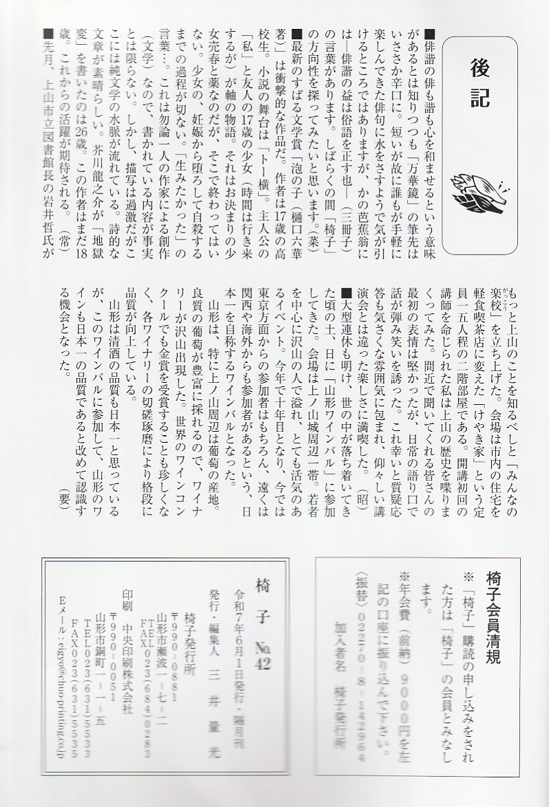 俳句誌 椅子42号刊行 令和7年6月1日
