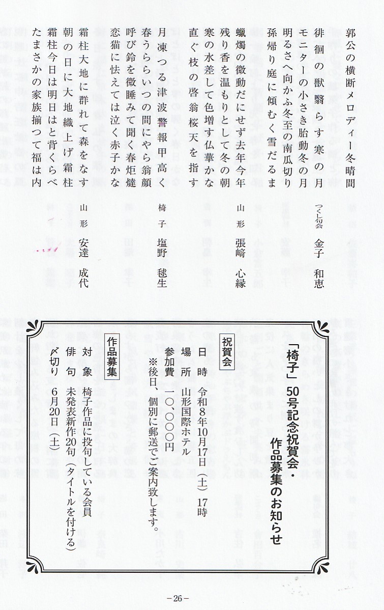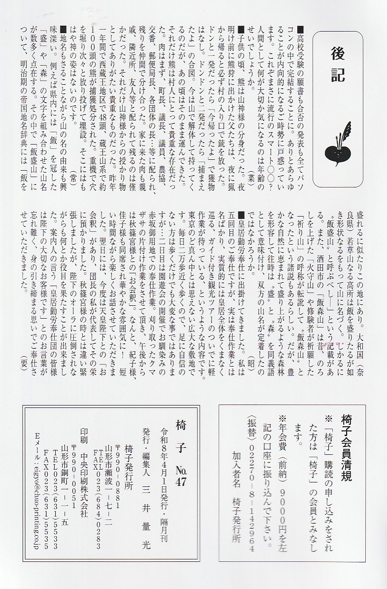 三井量光氏主宰俳句誌「椅子」第47号発刊さる