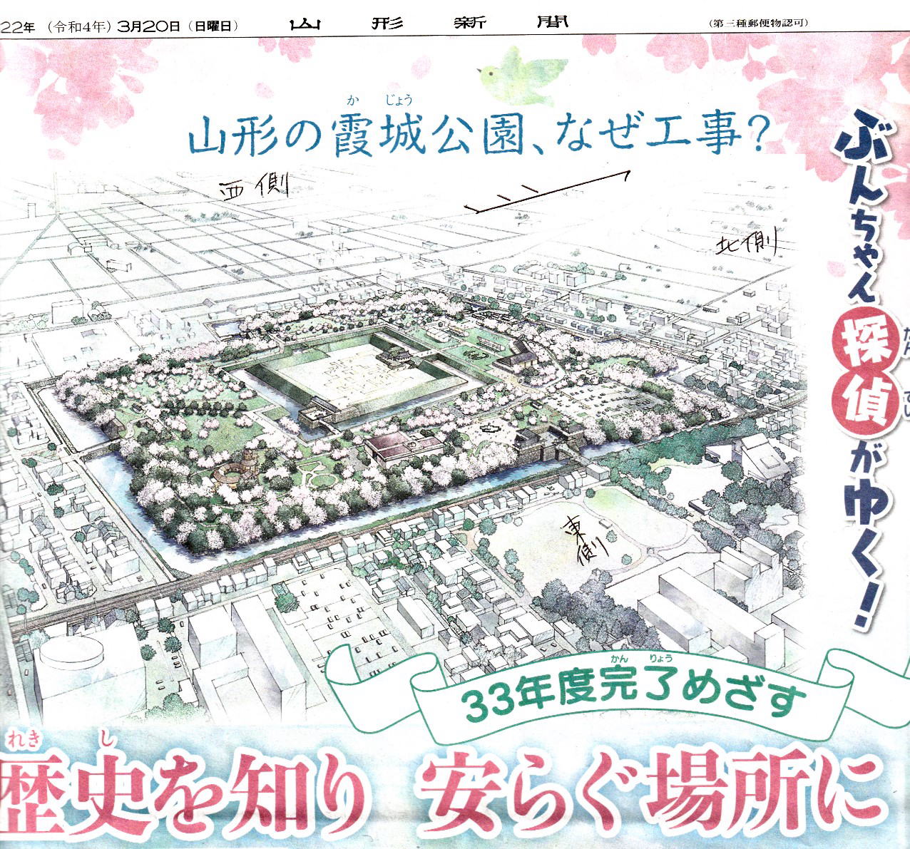 新しい山形城(霞が城)の姿が新聞の記事として表れてきました。
