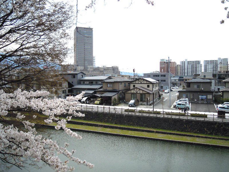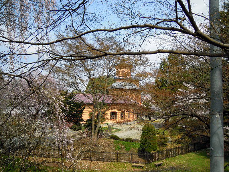 南側の眺めです。この側の眺めは大きく変わりました。 有名な済生館も桜の花の中にあります。