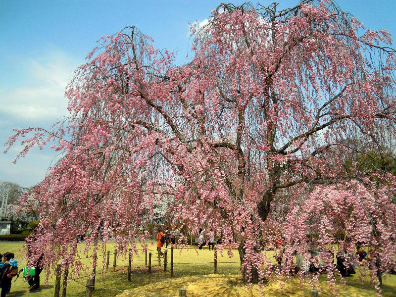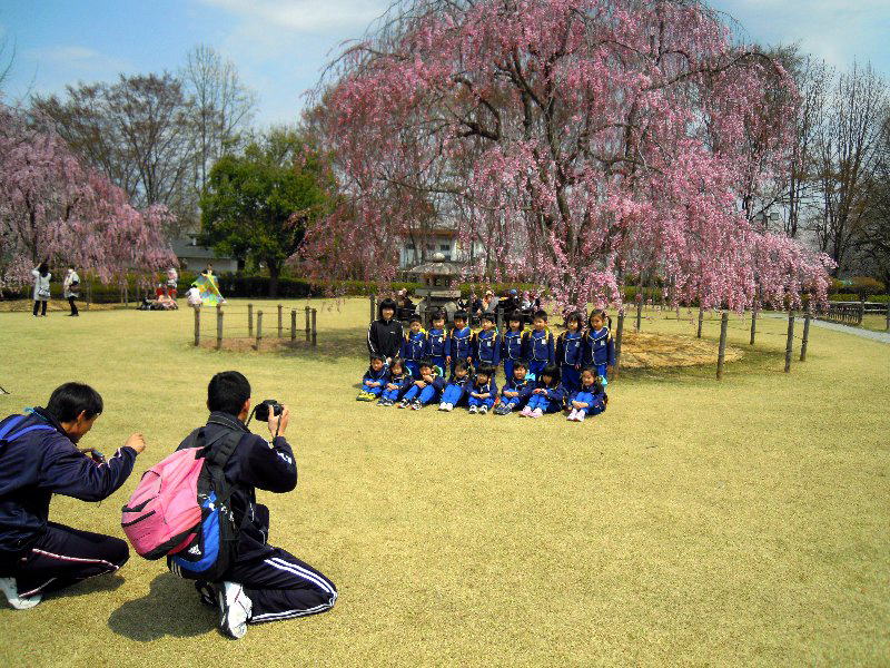 幼稚園の幼児たちも記念写真。 楽しそうだ。 しだれ桜が今年は特に綺麗です。