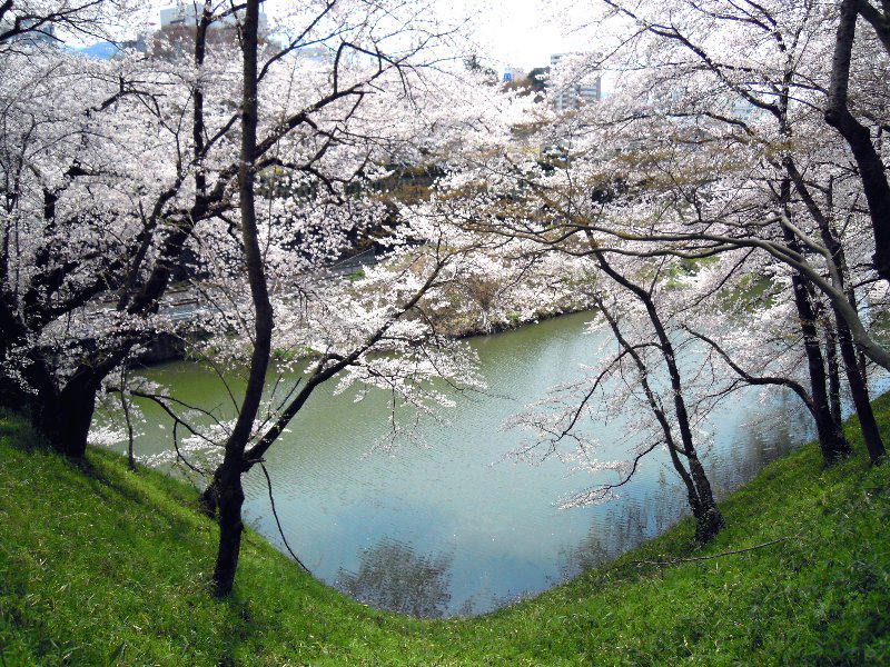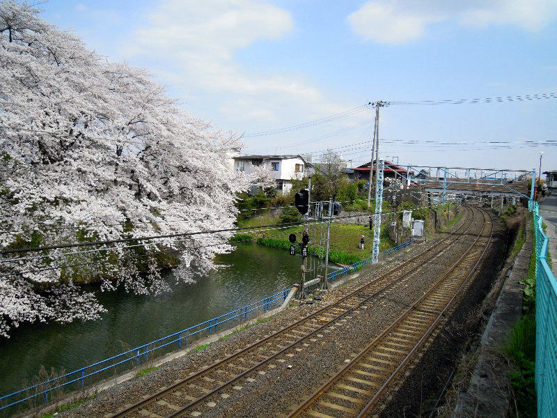 堀の上の土手から見た桜です。 北方向を見た眺め。
