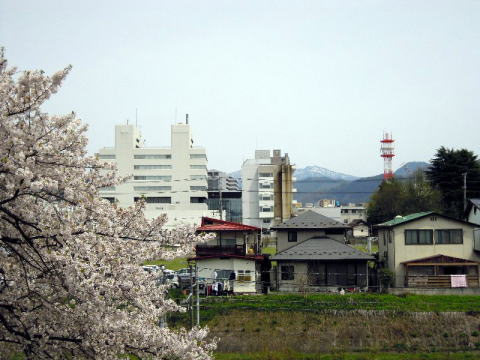 南方向の写真である。高い建物は山形駅に隣接している霞城セントラル
