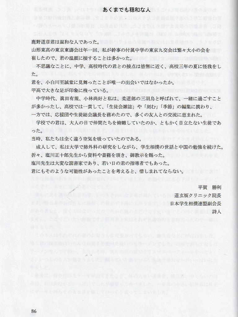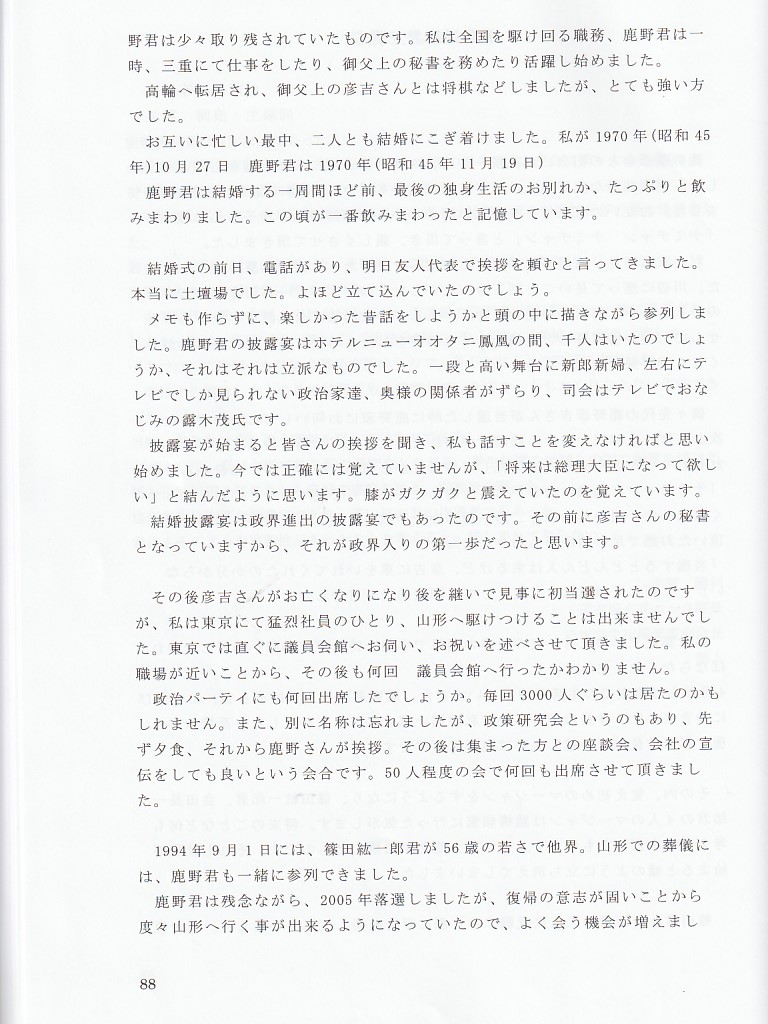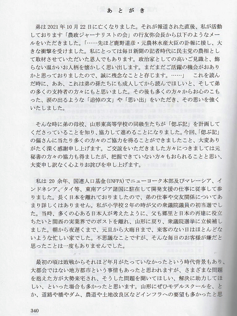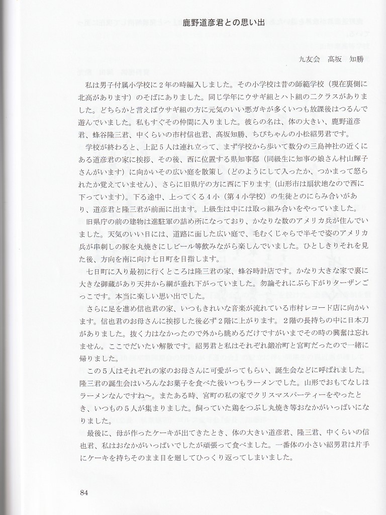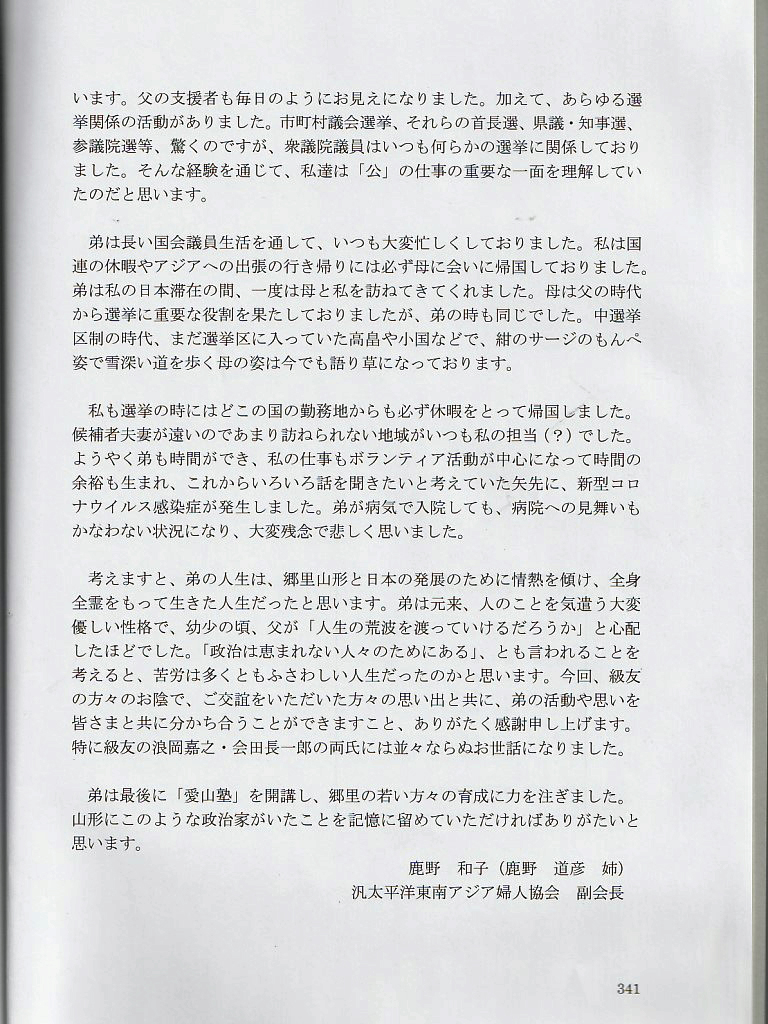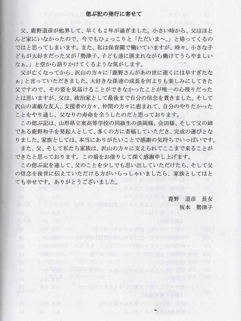あとがきに姉の鹿野和子様が我々同期会のみんなに感謝の言葉を述べられて