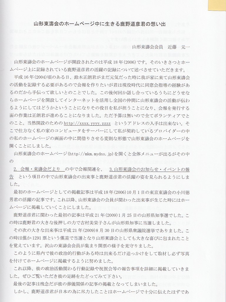 この経緯を既に山形東濤会のホームページに掲載してあります。ホームページの最下行から3番目の