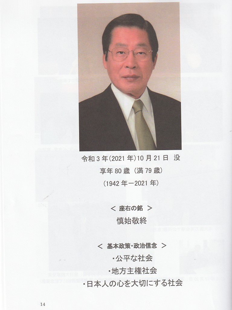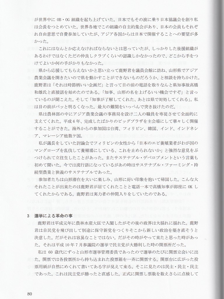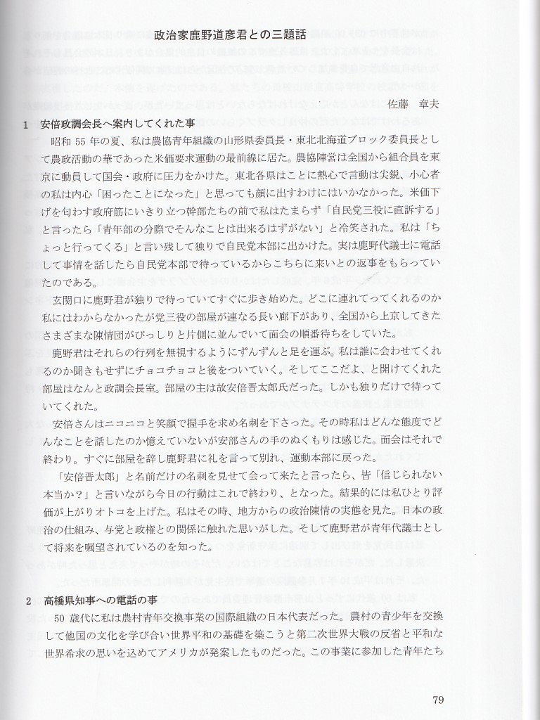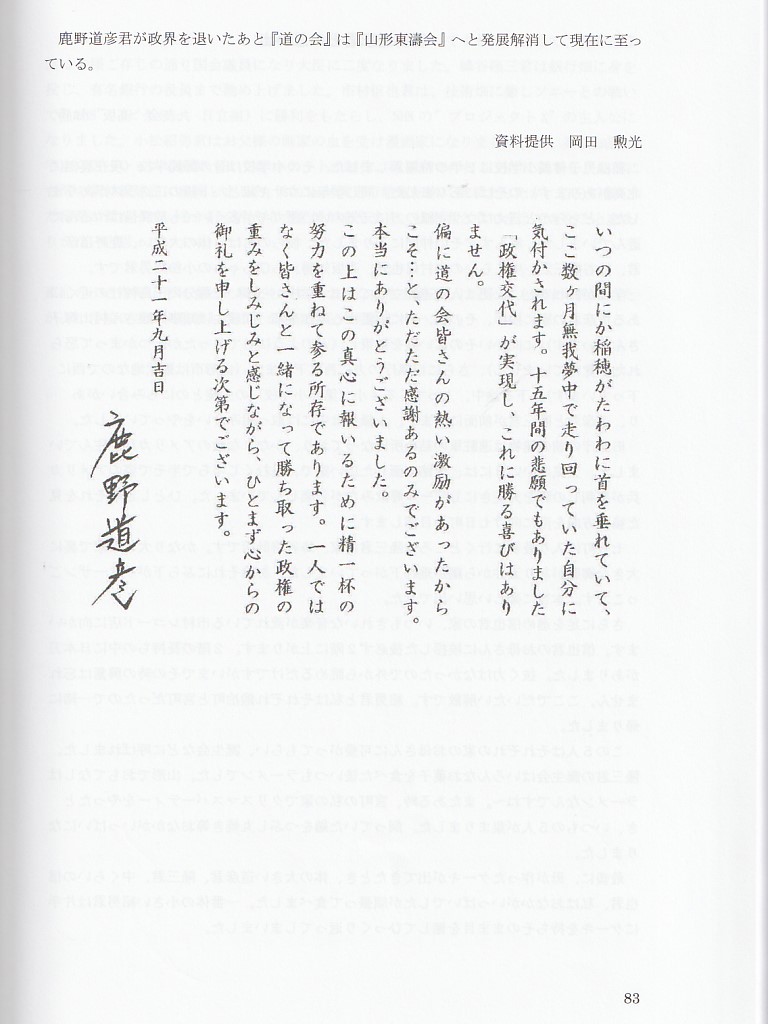 いた。我々も鹿野道彦君の政治へ取り組む姿勢からは大きな自信と誇りを