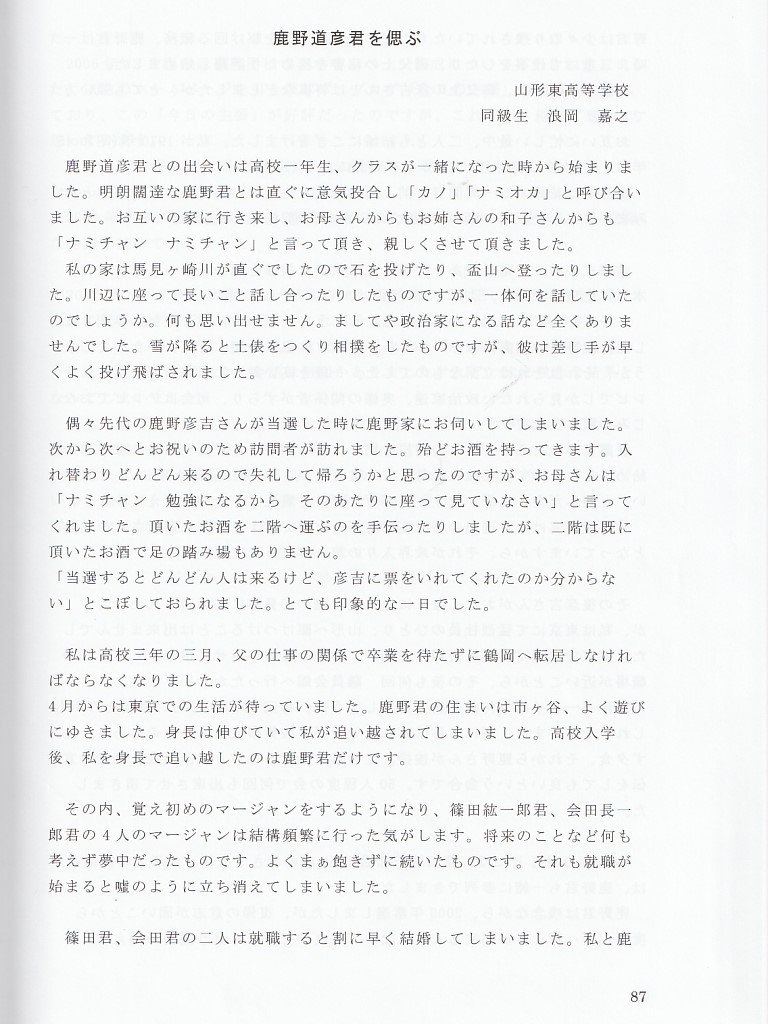 鹿野道彦君の思い出グラフティの中です。そちらも併せて読んでみて下さい。