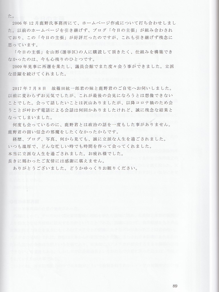 920グラムもあった。内容は鹿野君の政治信条がギッシリと詰まったもので
