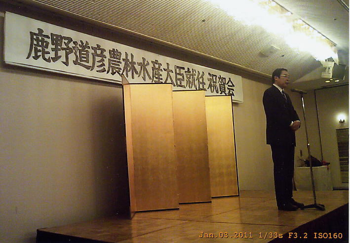 鹿野大臣からは挨拶をいただいたが氏は今後の日本の農業の展望とそれに対す