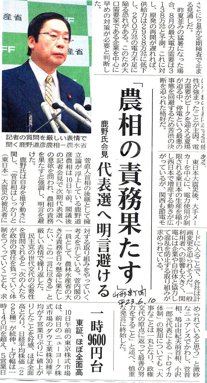 平成23年6月10日発刊山形新聞の関連記事を紹介します。