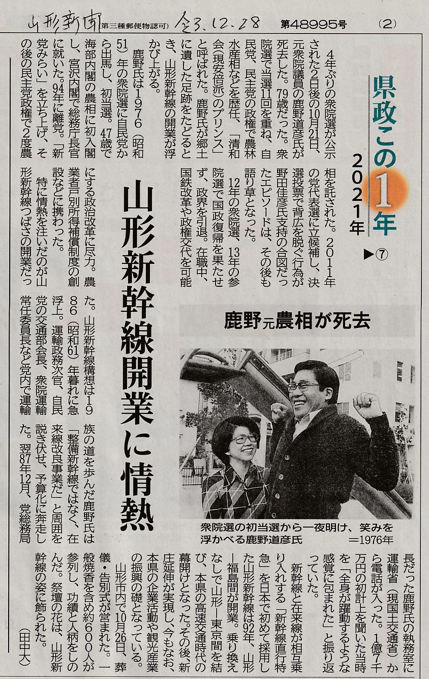 令和 3年10月21日 鹿野道彦君逝去 本当にご苦労様でした。ゆっくりお休みください。