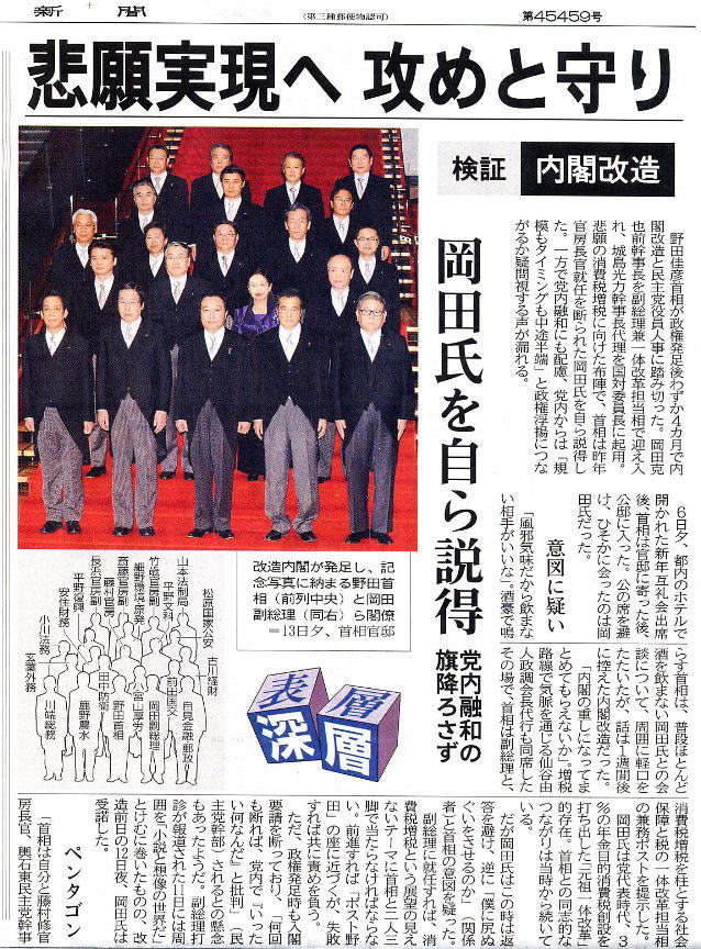 やきもきしながら13日は野田内閣の改造人事を見つめていた。
