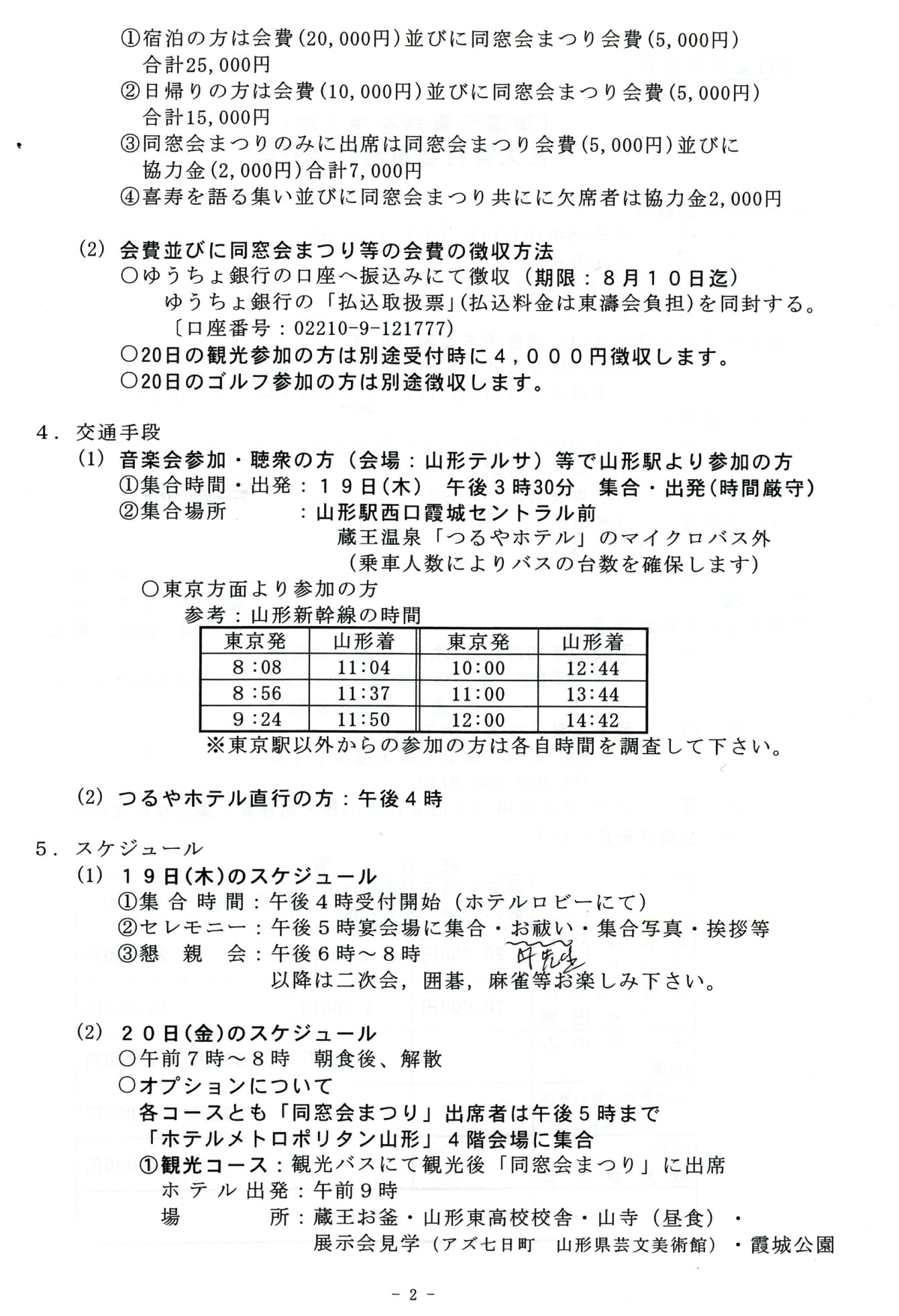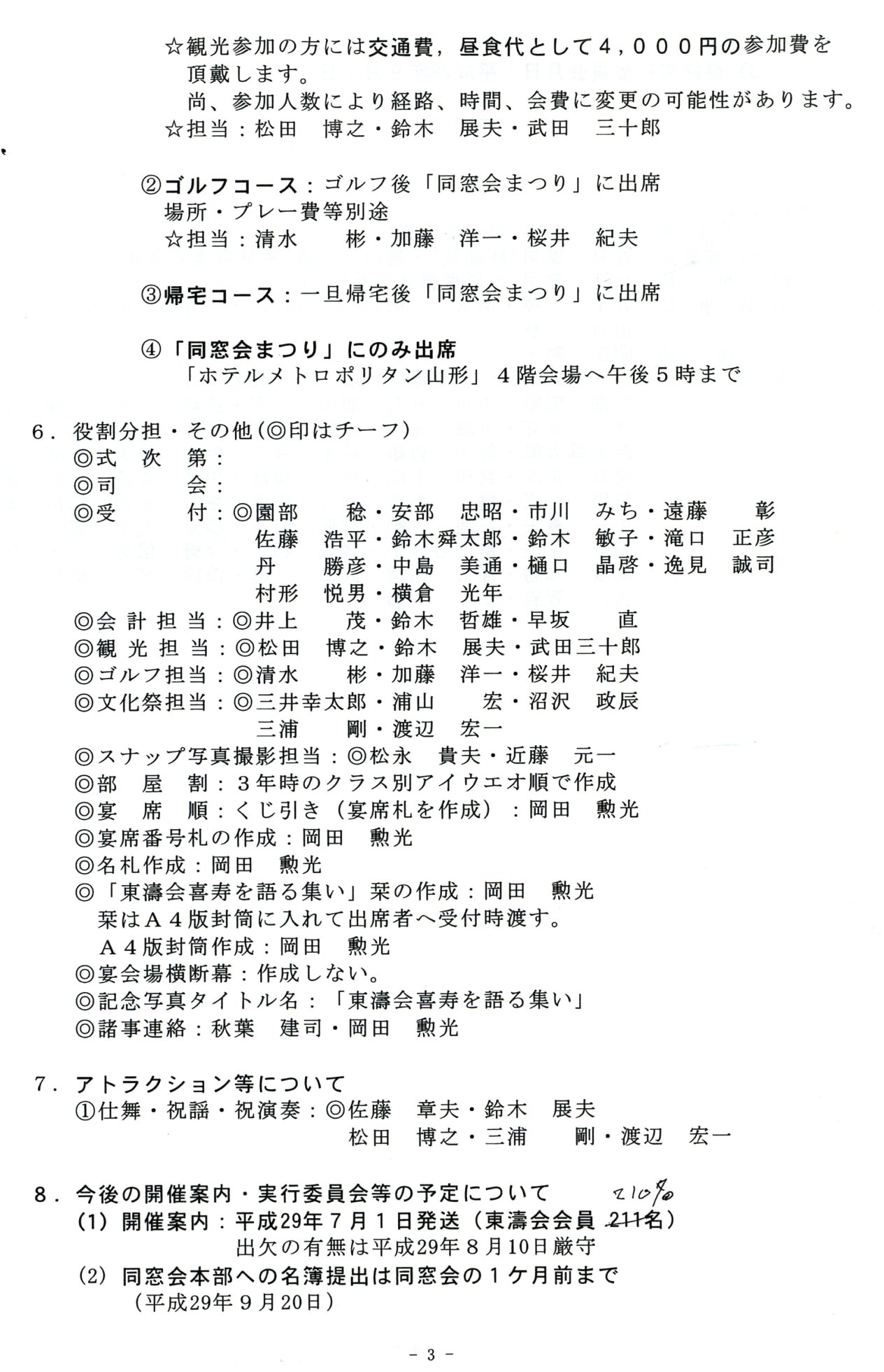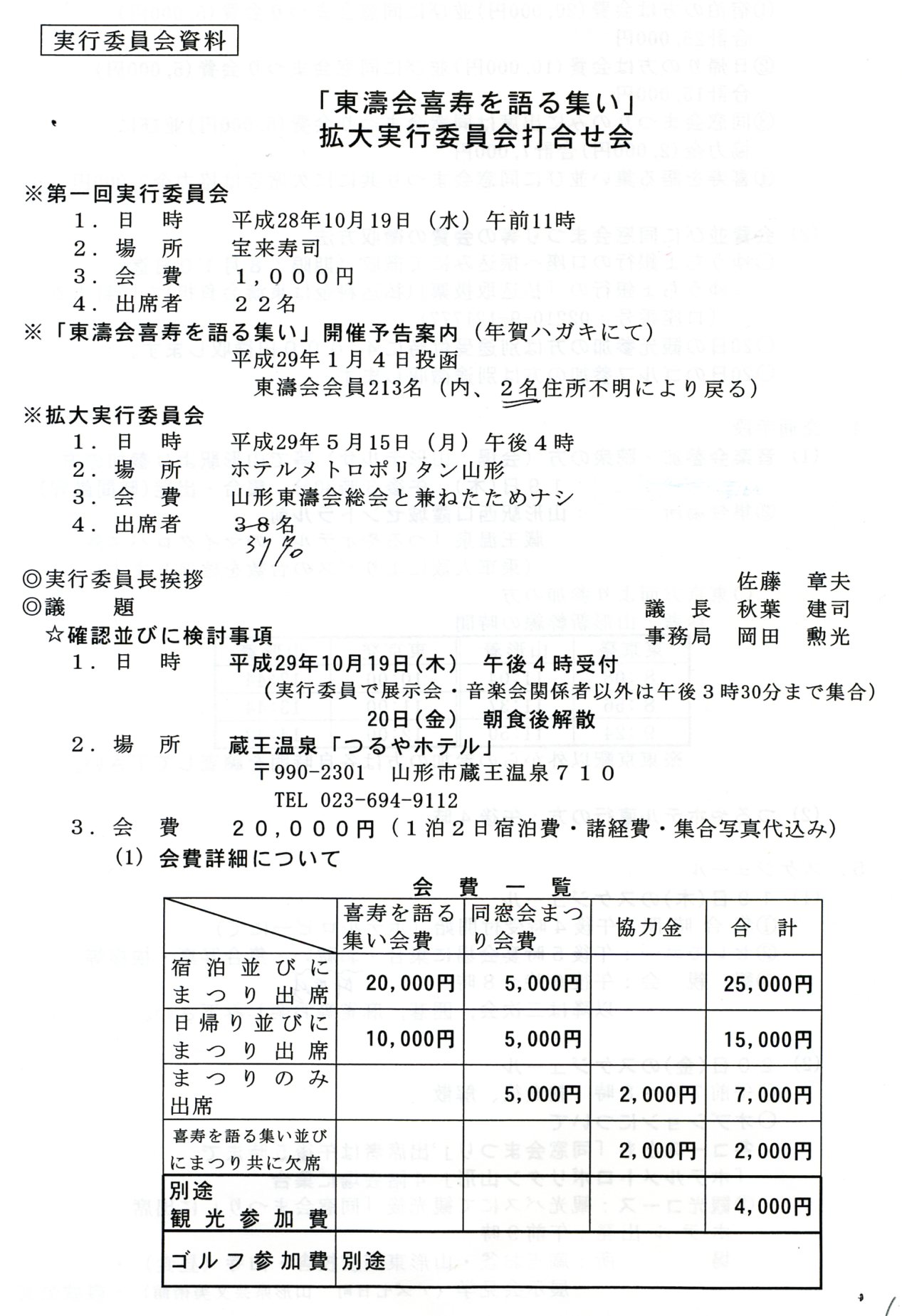*「東濤会喜寿を語る会」実施要領と当日の行動表