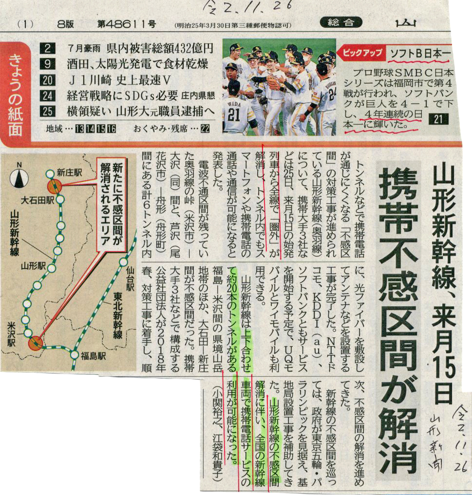 これまで山形ミニ新幹線には泣き所があった。それは車内での携帯電話が通じない