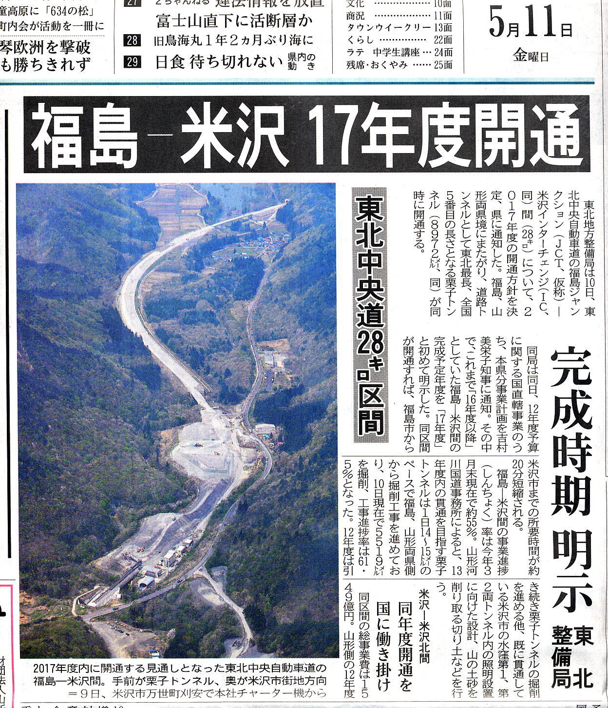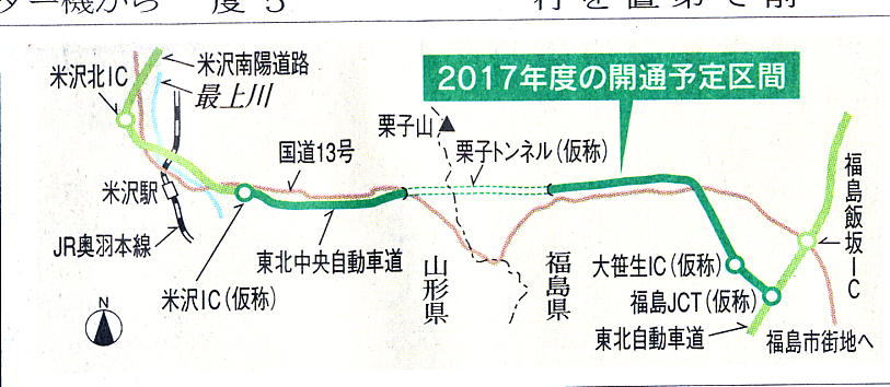 これによると米沢ー福島間の東北中央自動車道は2017年に完成とのこと。
