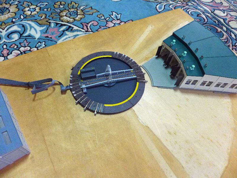 現在新しく取り組んでいるのが蒸気機関車の転車台と放射状格納車庫の構築である。