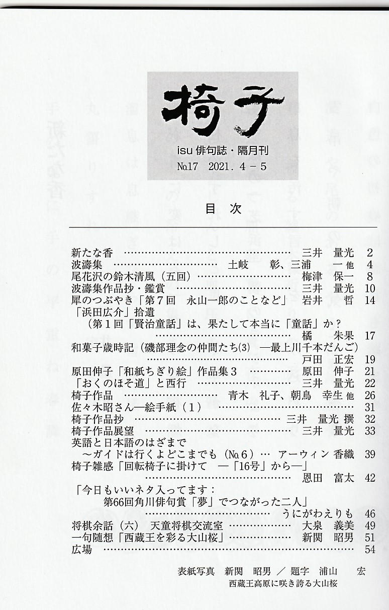 さて、以上が俳句誌「椅子」第17号の概要です。