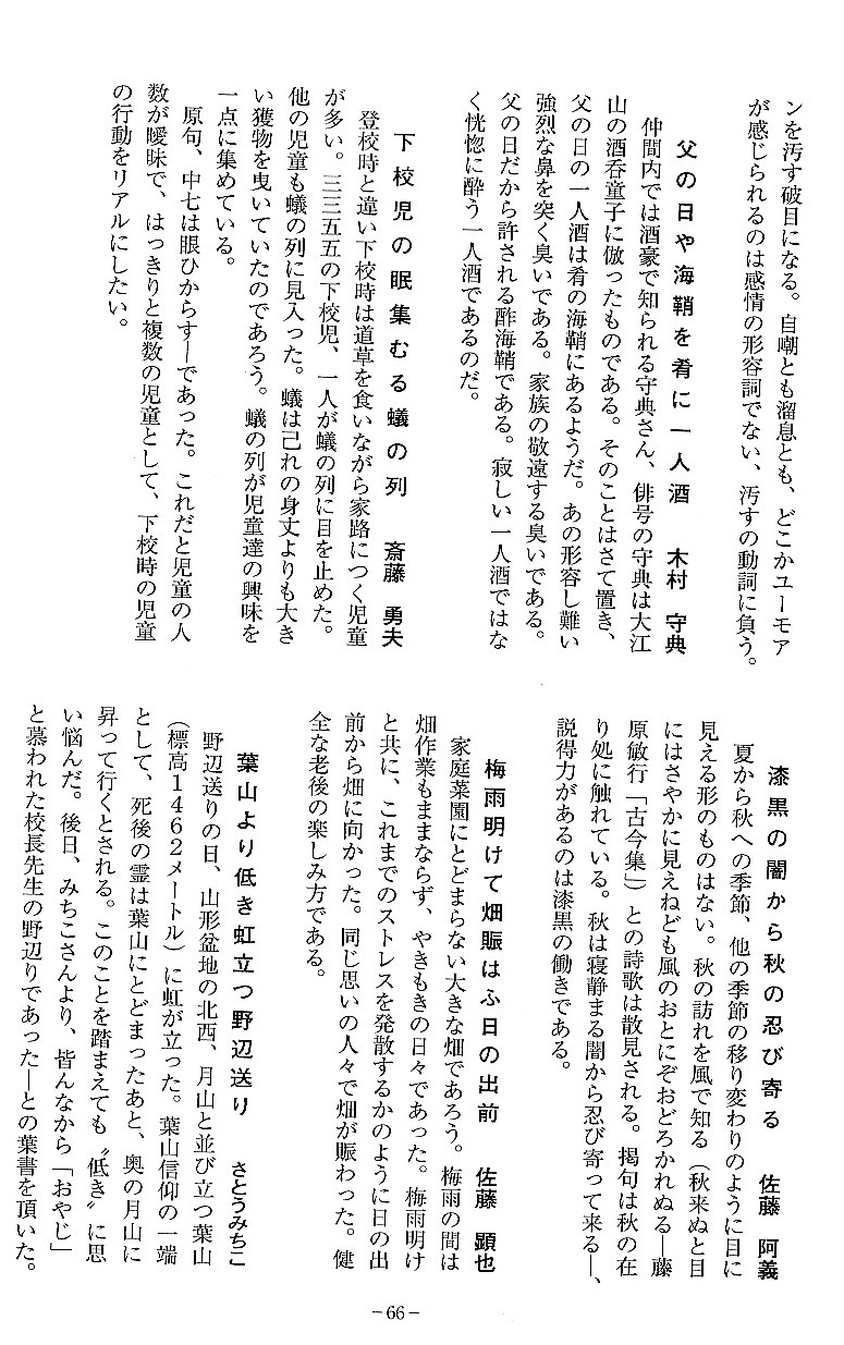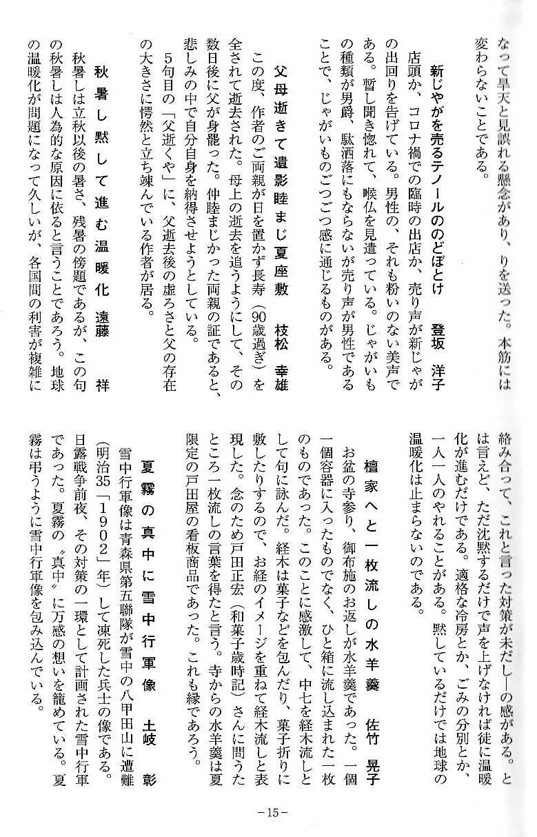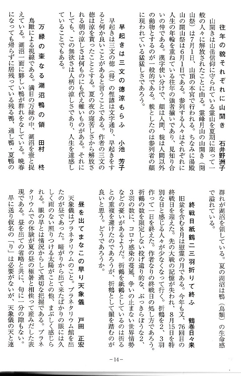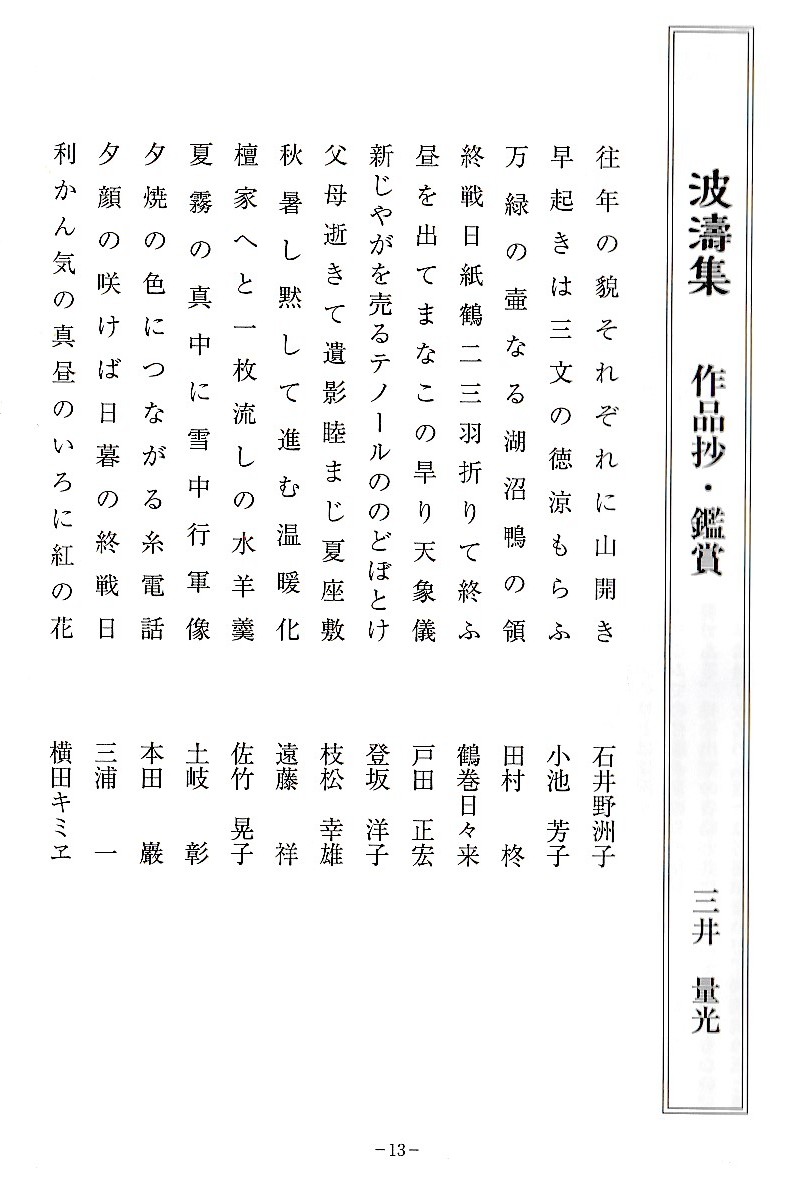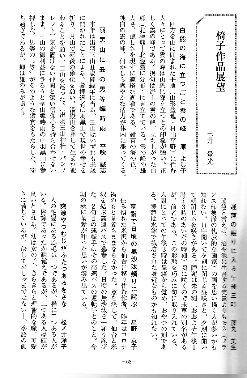 会員からの投句をすべて載せています。そして選者が個人ごとの代表作を選び出して
