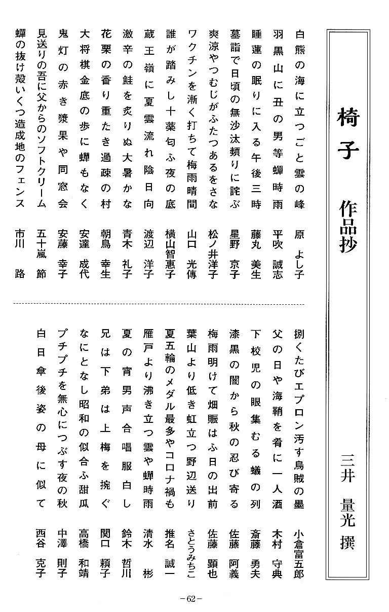 三井量光君主宰俳句誌「椅子」第20号発刊さる