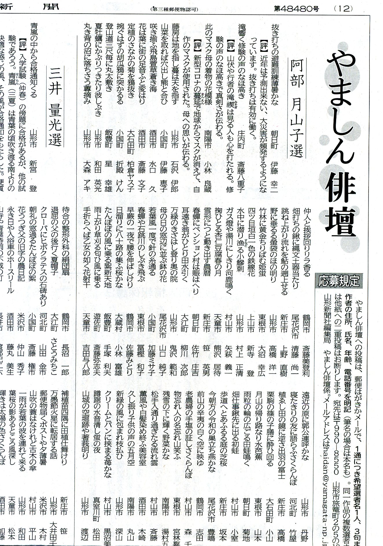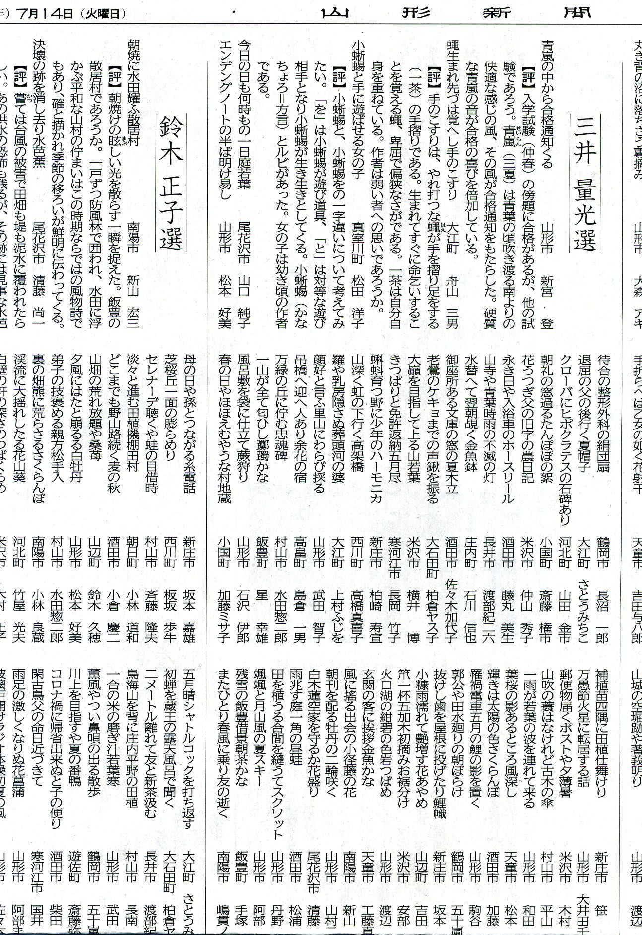 彼(旧姓幸太郎)は現在、山形新聞の「やましん俳壇」という短歌、俳句等の