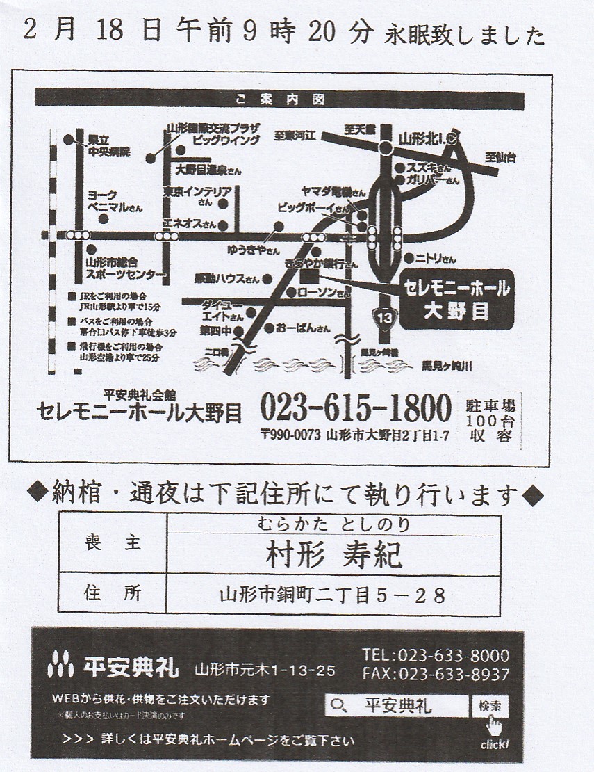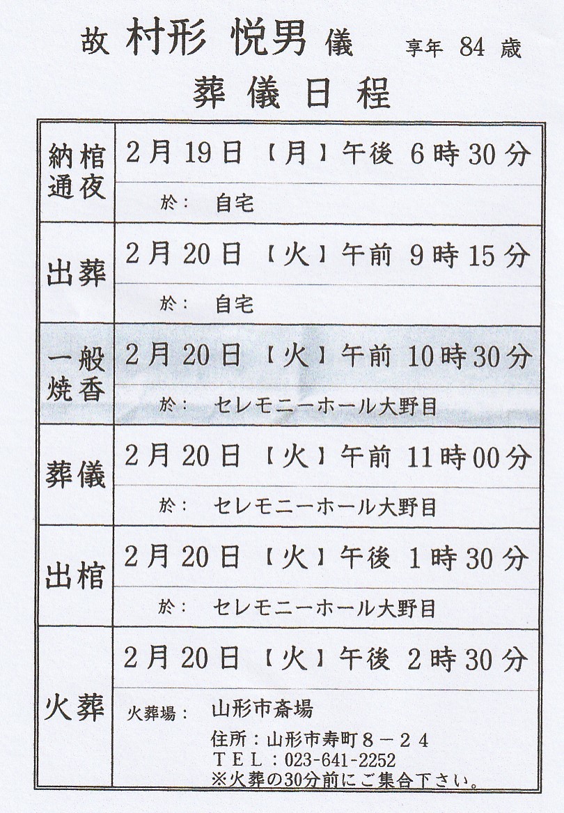 訃報 村形 悦男氏 ご逝去す