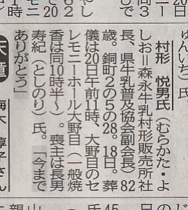 19日の新聞記事お悔やみ欄より