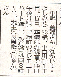 19日付の山形新聞の訃報欄の記事を紹介します。