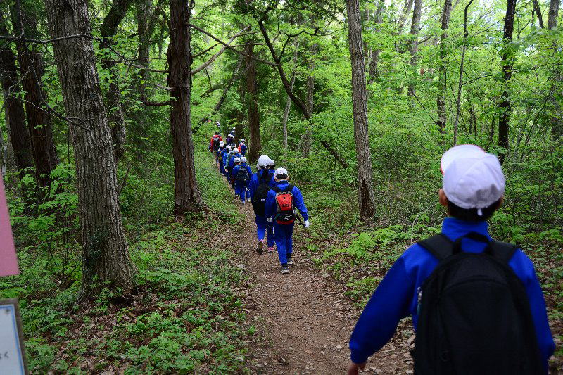 途中、地元の楯山小学校の子供たちと出会った。元気に挨拶を返してくれた。