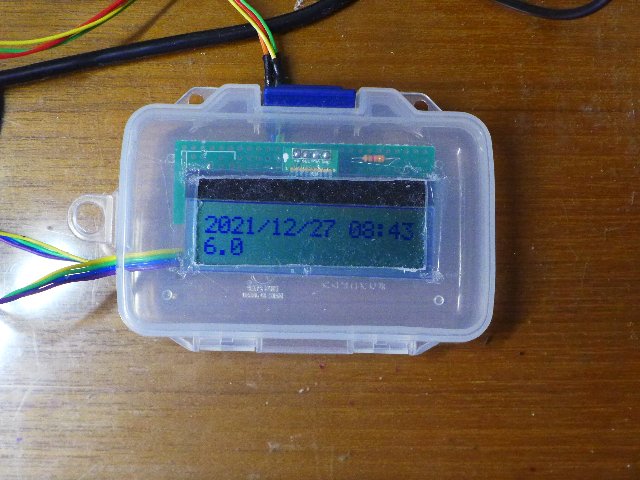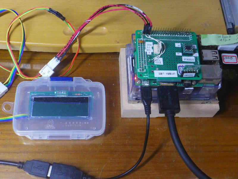 計測されたデータはラズベリパイで処理され、この下のBOXのLCDに表示します。