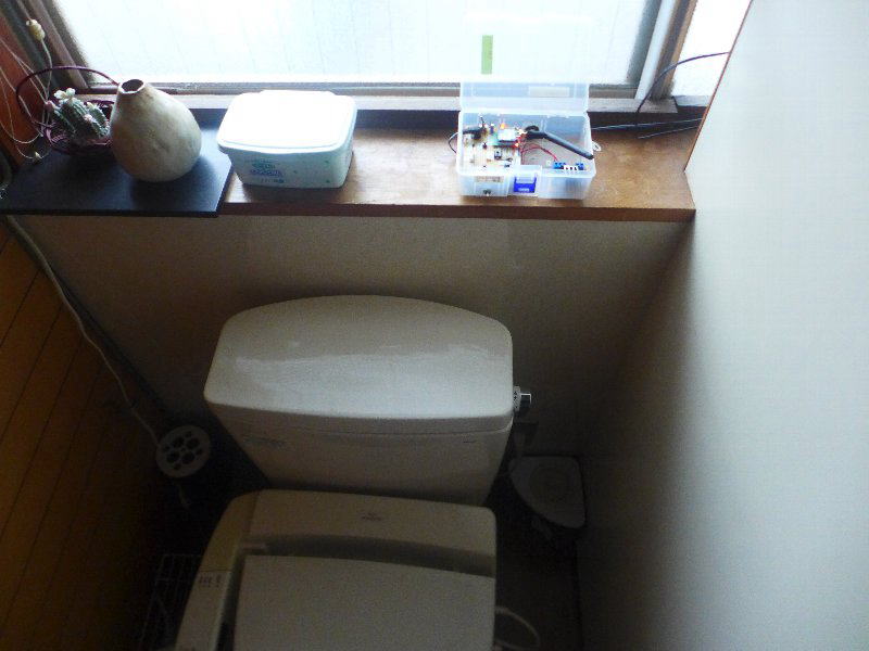 気温の測定場所にしているのが2階のトイレ内の空間です。そこに温度センサーと