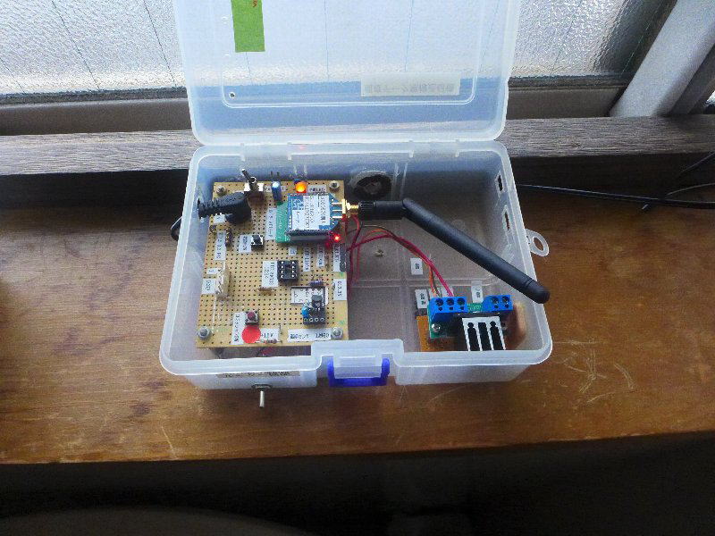 下の写真で右端のプラスチックケースが計測と伝送を行う機器です。