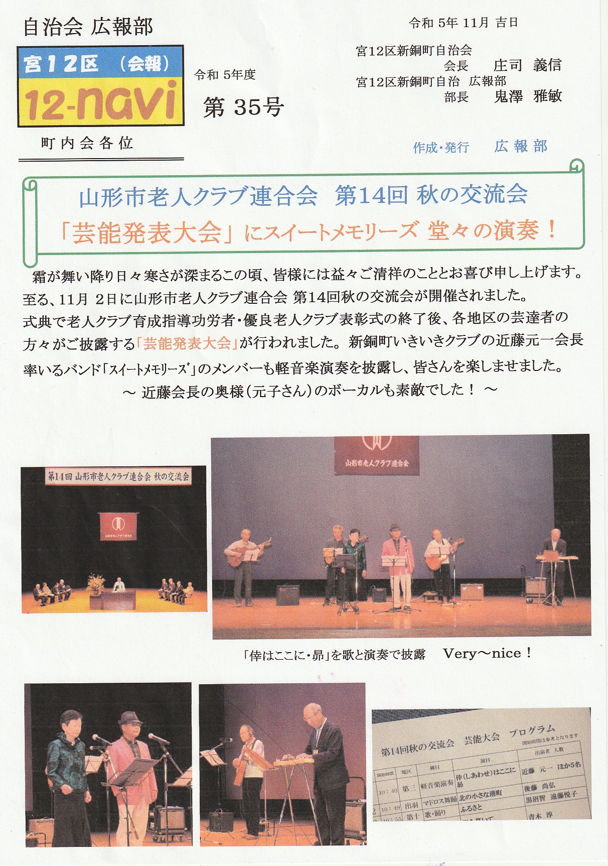 さて、今回の舞台は山形市老人クラブ連合会主催の秋の交流会での芸能発表会である。