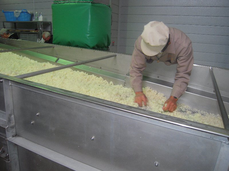 酒米が蒸されて乾かす作業が行われていた。この米を全員に食べさせてくれた。