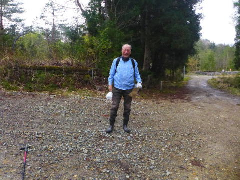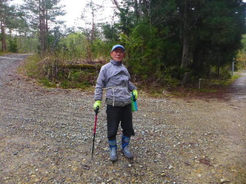 さて我々の山菜取りの装束をお見せしよう。さすがS君は本格的である。