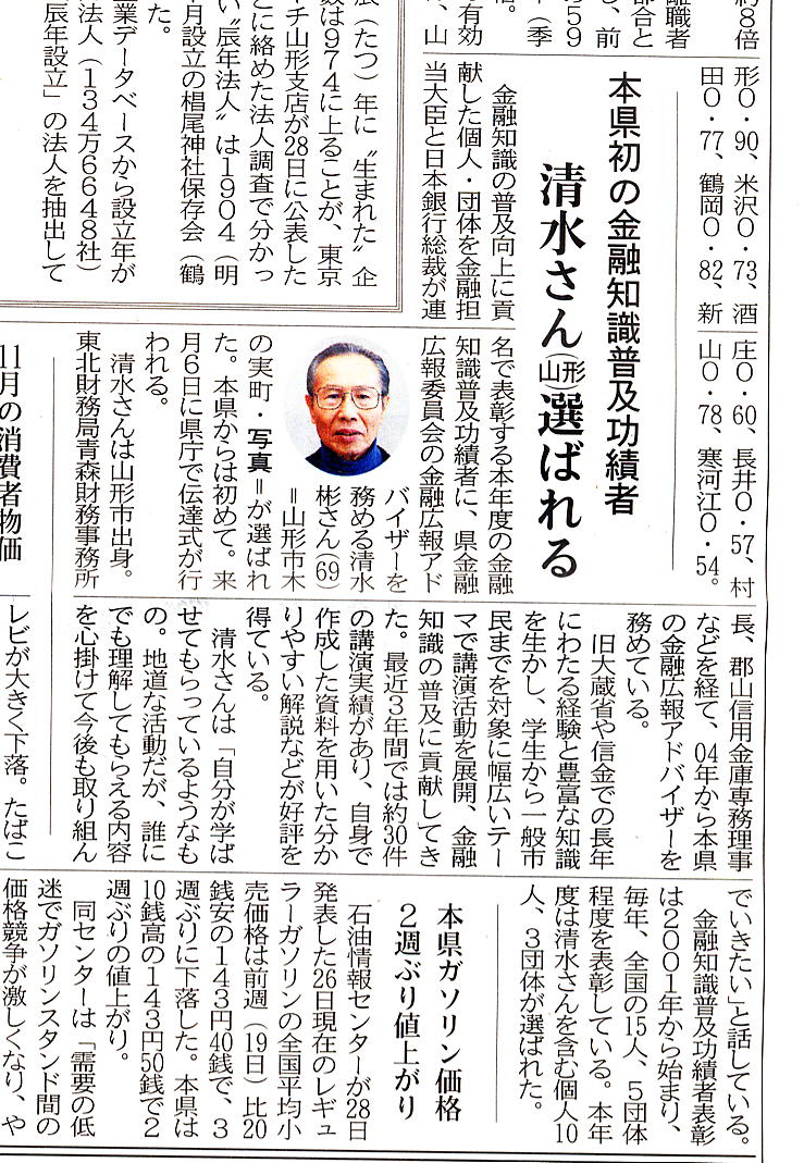 以下に山形新聞平成23年12月29日版の記事を掲載します。