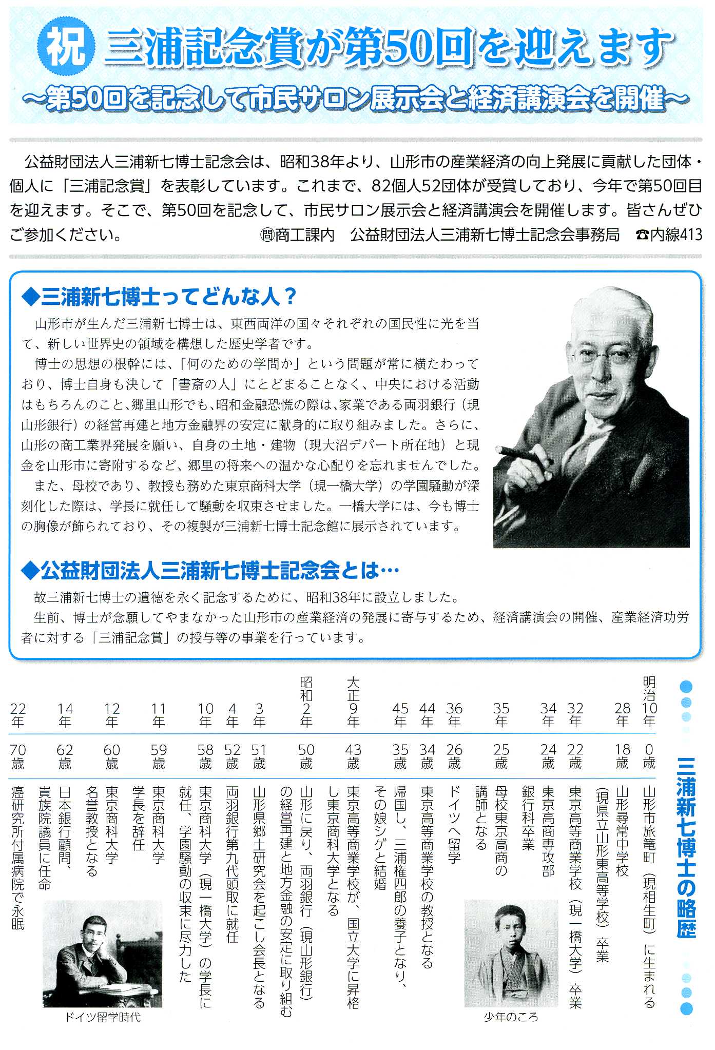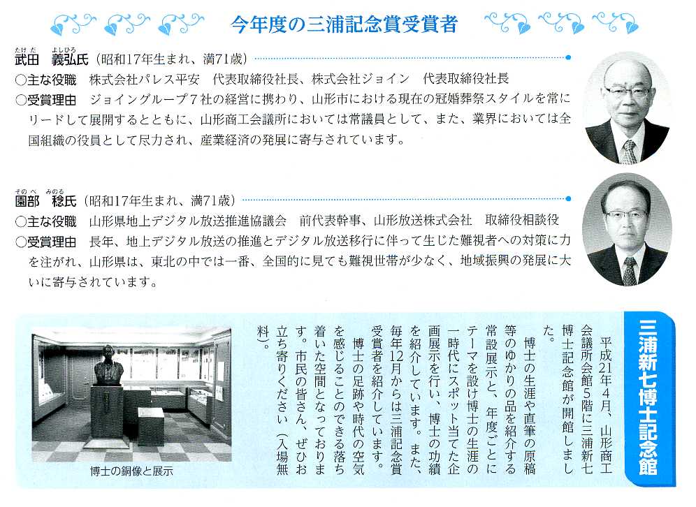 この賞は故三浦新七博士の遺徳を永く記念するために山形市の産業経済