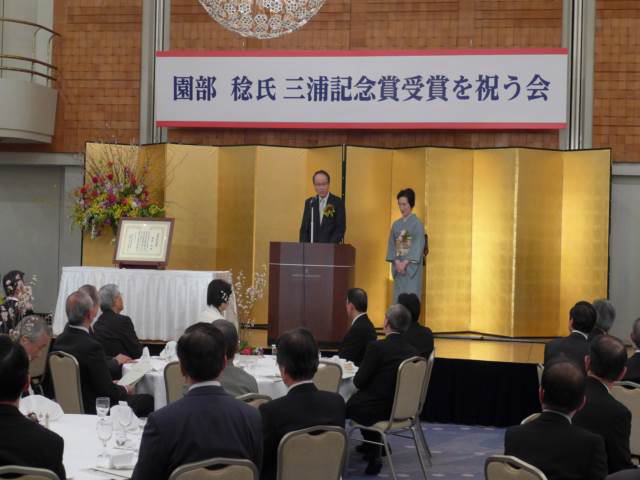 以前にお伝えしてあった園部君の三浦記念賞受賞の栄誉を祝う会が昨夜平成26年