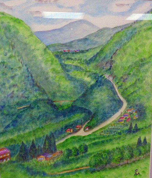 山間の道とそこに散在する小集落の姿を描いてみました。