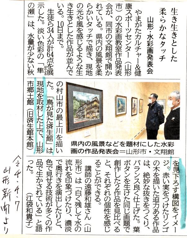 山形新聞の記事に書かれた私の絵に関する記述です。