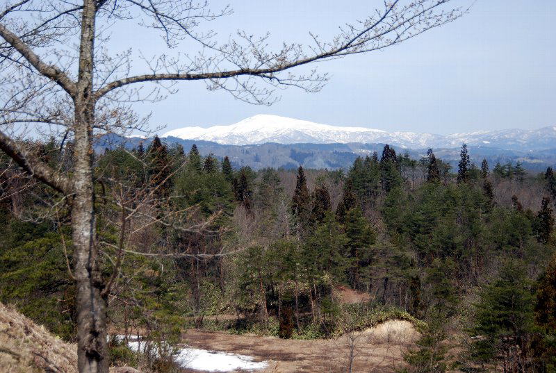 この地の右側には月山の峰が真っ白となり聳えている。