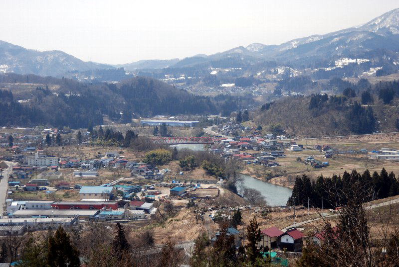 この地から見た宮宿の町である。川は最上川である。