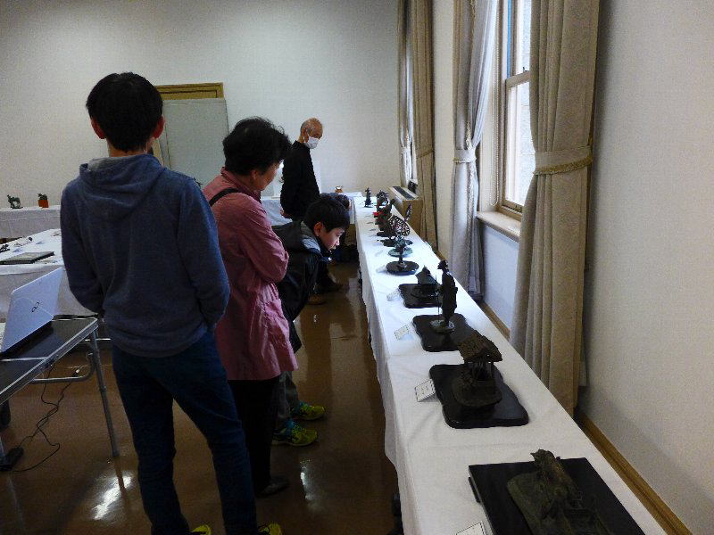 会場は一室にまとめられている。希望により蝋型鋳物の製作過程について新設に