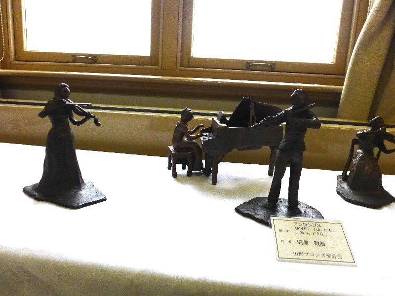 文翔館に入り廊下を行くと蝋型鋳物作品の発表会場に出会う。