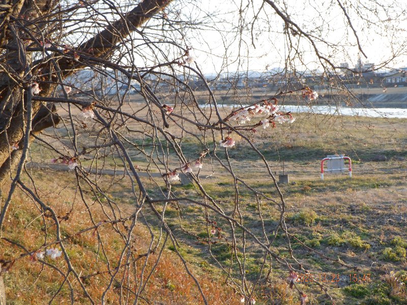 土手には毎年早咲きで有名な桜がもう花を咲かせて私を迎えてくれた。